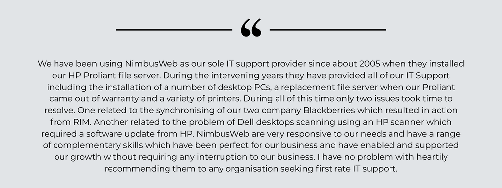 At NimbusWeb, we understand that technology challenges can be overwhelming. That’s why, for 25 years, we’ve been working with businesses to quickly identify and solve their most complex issues – clearly, simply, and reliably. Based in West London, we provide smart solutions and expert consultancy services to clients both within the M25 and throughout the UK.